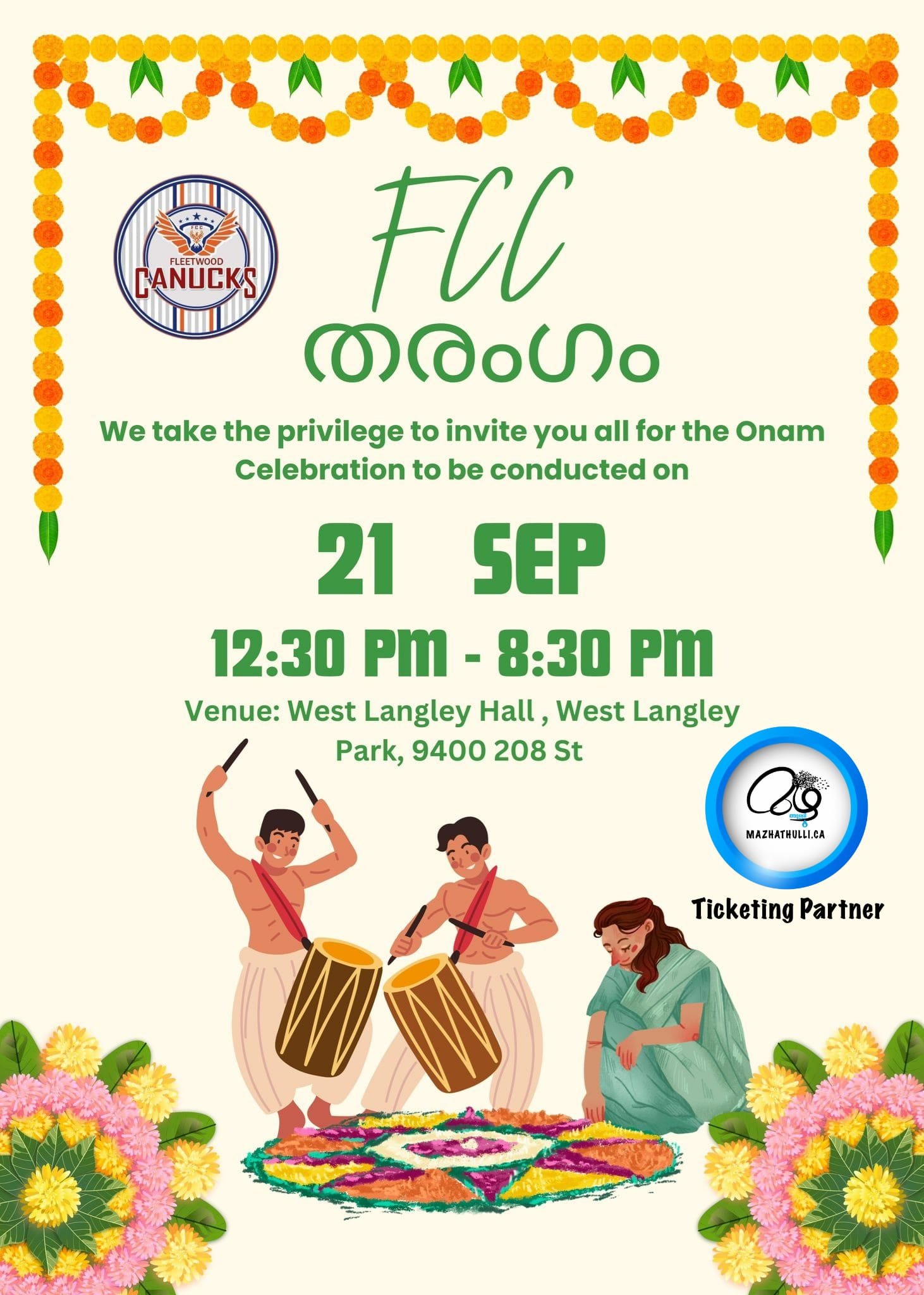 • Mazhathulli.ca is only the ticketing partner and event organizers are responsible for all event enquiries